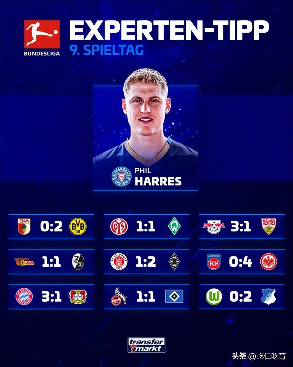 就在赛前,来自德国的权威足球媒体《转会市场》也发布了每周一期的娱乐预测,来为本轮比赛进行预热。